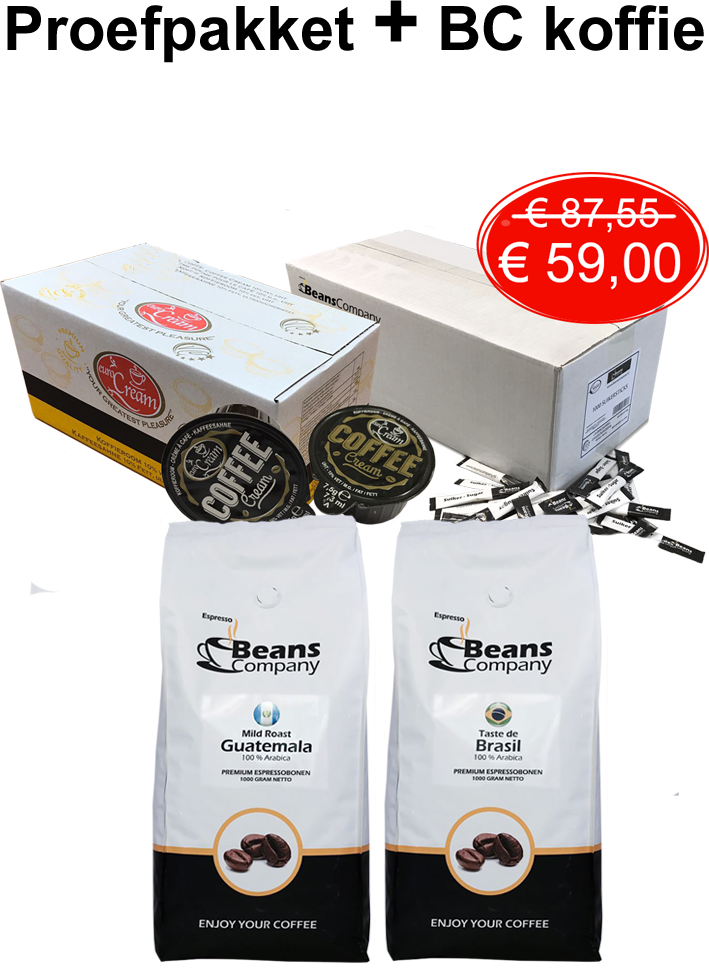 Proefpakket Beans Company Espressobonen met 2 heerlijke melanges incl. suiker en melk?