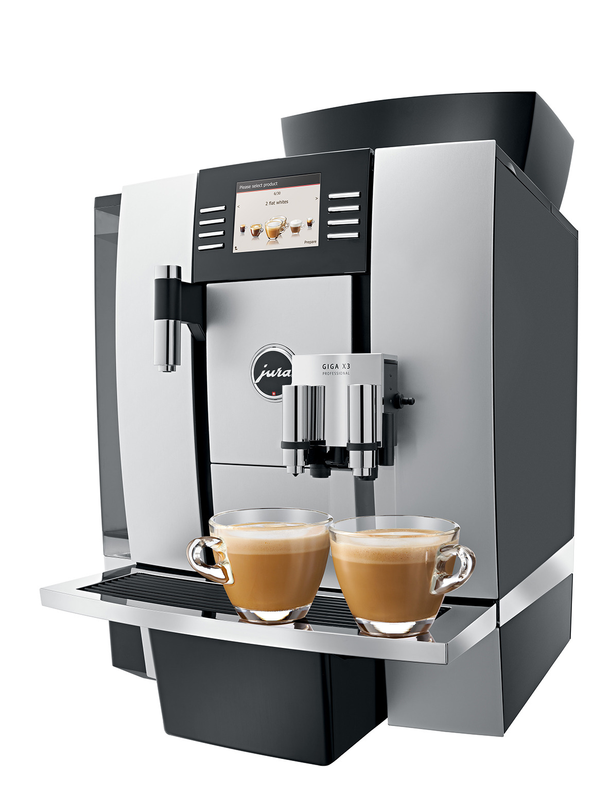 De nieuwe GIGA X3 Professional voorziet in alles wat in een kantoortuin of in een pauzeruimte voor medewerkers telt: tot wel 31 individueel programmeerbare koffiespecialiteiten en 12 extra barista-recepten met één druk op de knop, waaronder de trendy flat white, een eenvoudige bediening en weinig werk bij het bijvullen dankzij het grote bonenreservoir met een inhoud van 1 kg en het aroma-beschermdeksel alsook de set afvoer restwater en de optionele set afvoer koffieresidu.