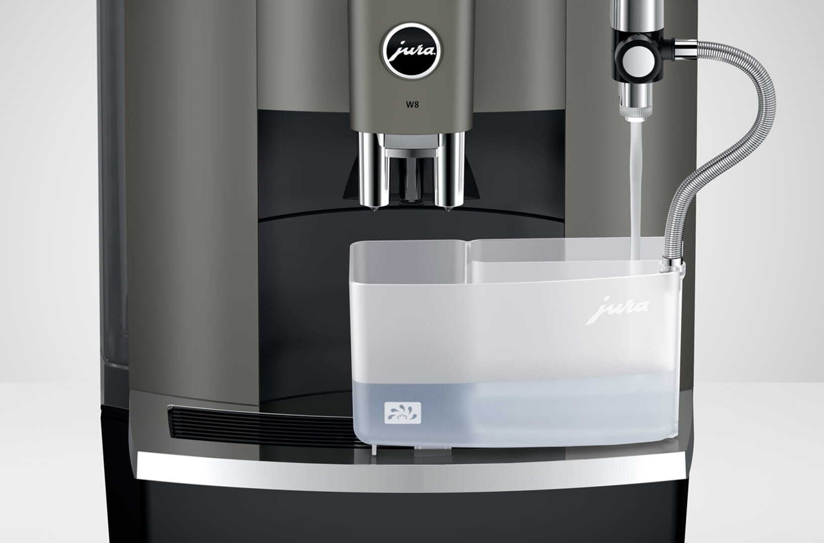 De compacte W8 onderscheidt zich door zijn veelzijdigheid; op zijn menu staan 17 koffiespecialiteiten die hij op het hoogste niveau bereidt. De professionele Aroma-molen (P.A.G.2) en de technologie voor microschuim completeren de prestaties van de W8 op uitstekende wijze.