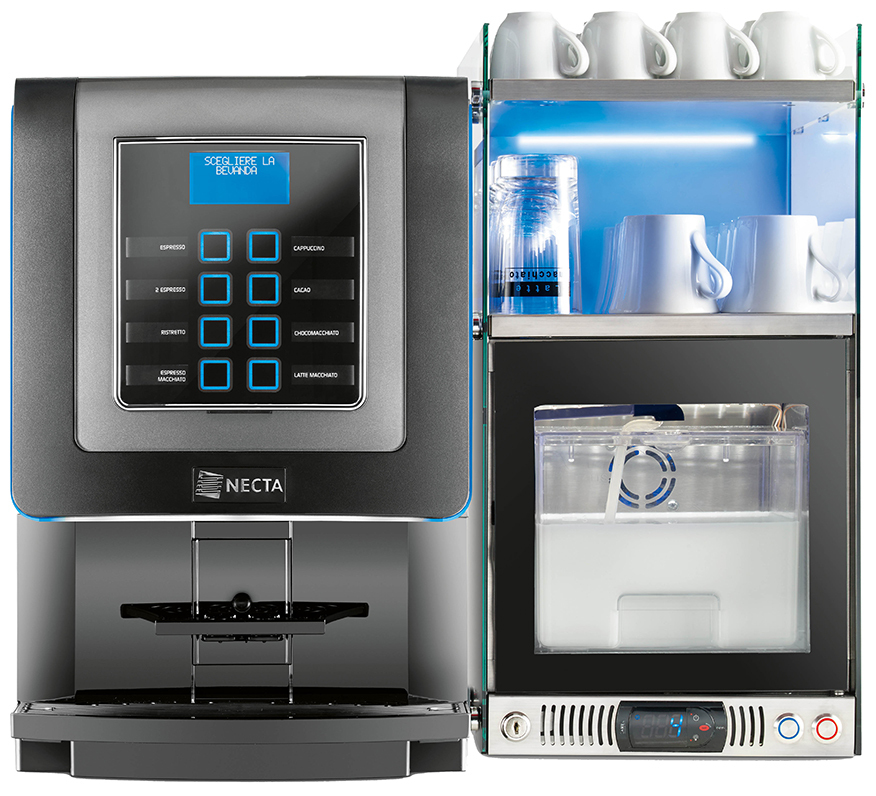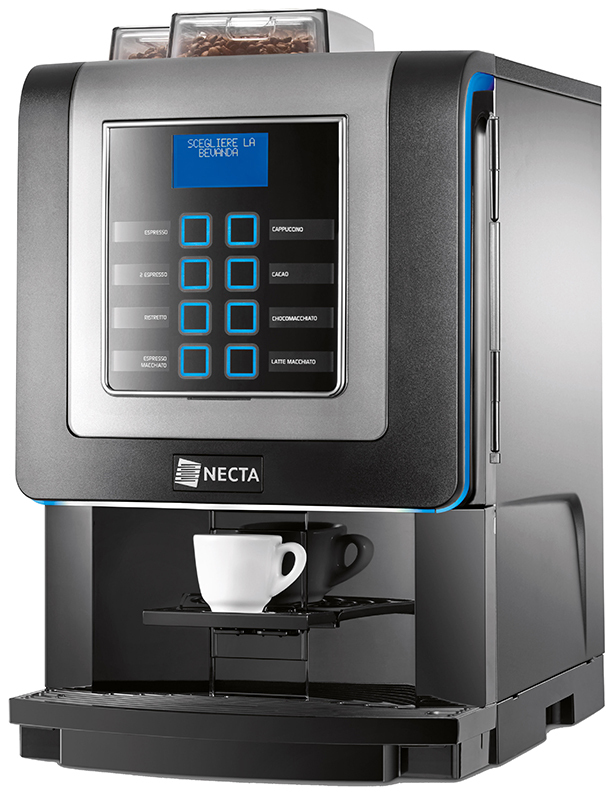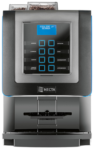 De Koro van Nesta is niet alleen een van onze mooiste koffiezetapparaten, u zet er ook nog eens perfecte koffie mee. Met deze compacte en elegante koffiezetmachine kunt u tot ca. 20 personen uit de voeten. Door de keuze van hoogwaardige materialen en het perfecte afwerking is deze automaat een sierraad in uw bedrijf. Voorzien van 8 keuzeknoppen zit er altijd wel de drank van uw voorkeur bij en uiteraard wordt alles vers gezet van gemalen espresso bonen.