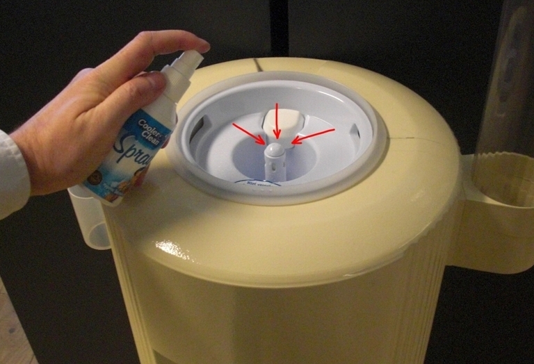 Voor een goede hygiëne van de watercooler is het belangrijk dat de cooler vrij blijft van bacteriën. Gebruik daarom bij elke nieuwe fles de Cooler Clean Spray en spuit zowel de pin van de cooler als de dop van de fles goed in. Hierdoor voorkomt u dat de cooler van buitenaf wordt verontreinigd met bacteriënof virussen.