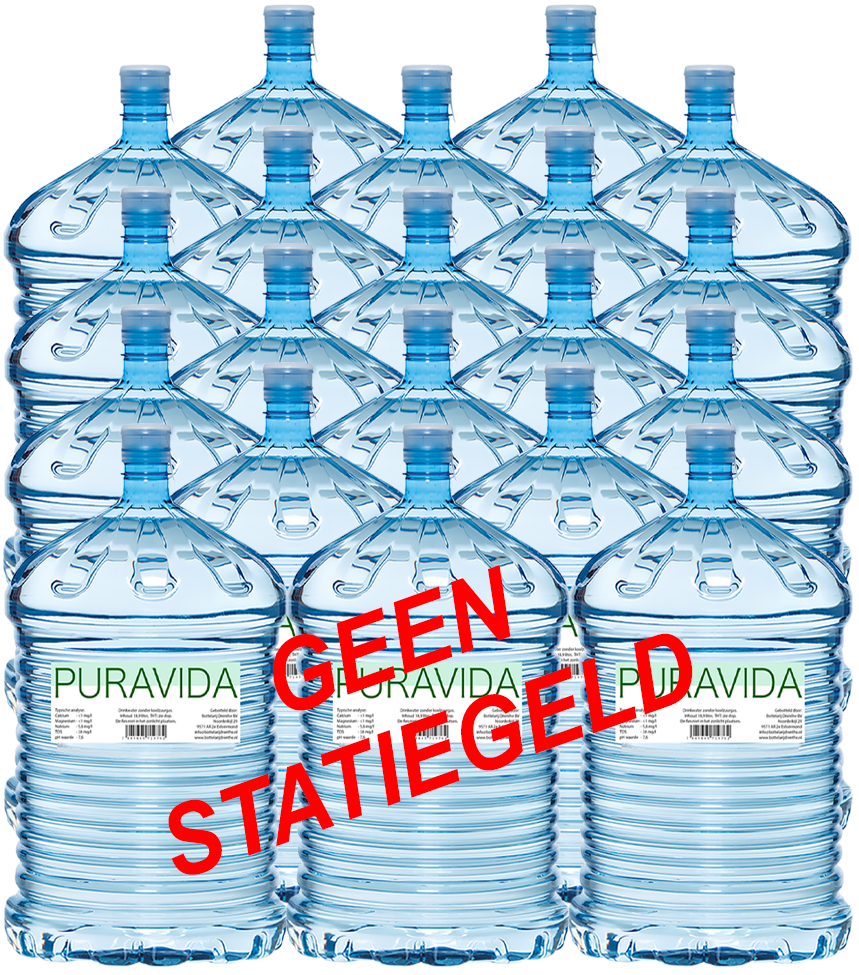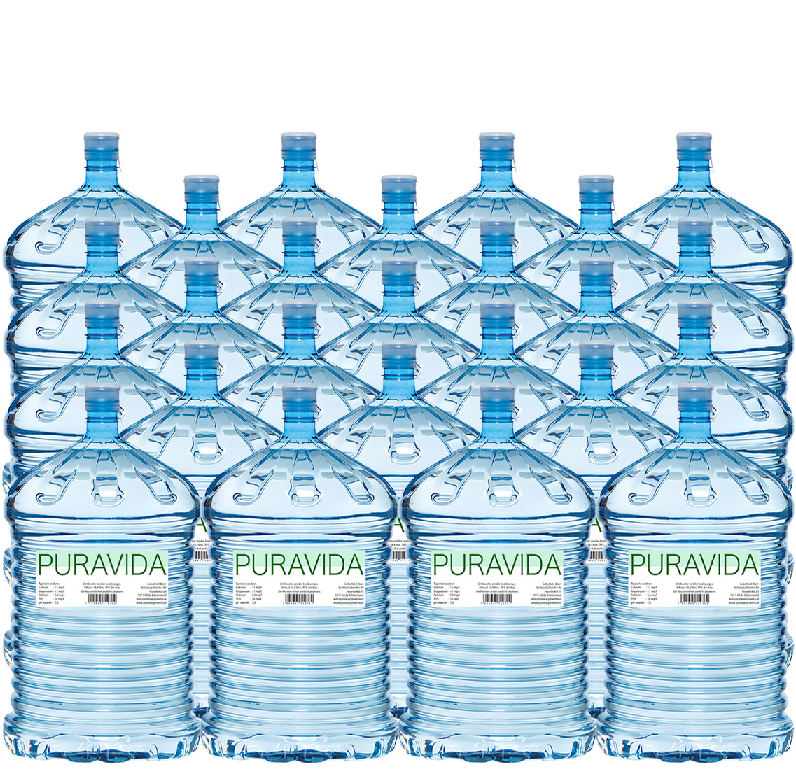 Het water van PURAVIDA wordt geleverd in solide eenmalige PET flessen van 18,9 liter die biologisch afbreekbaar en recyclebaar zijn waardoor ze uitermate milieuvriendelijk zijn. Na gebruik kunt u ze gewoon plat maken (er even op gaan staan) en bij het plastic afval doen.