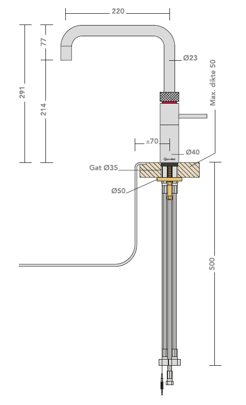 LET OP: De Quooker Cube werkt niet "stand alone" maar uitsluitend in combinatie met een reservoir (PRO3/Combi/Combi+).