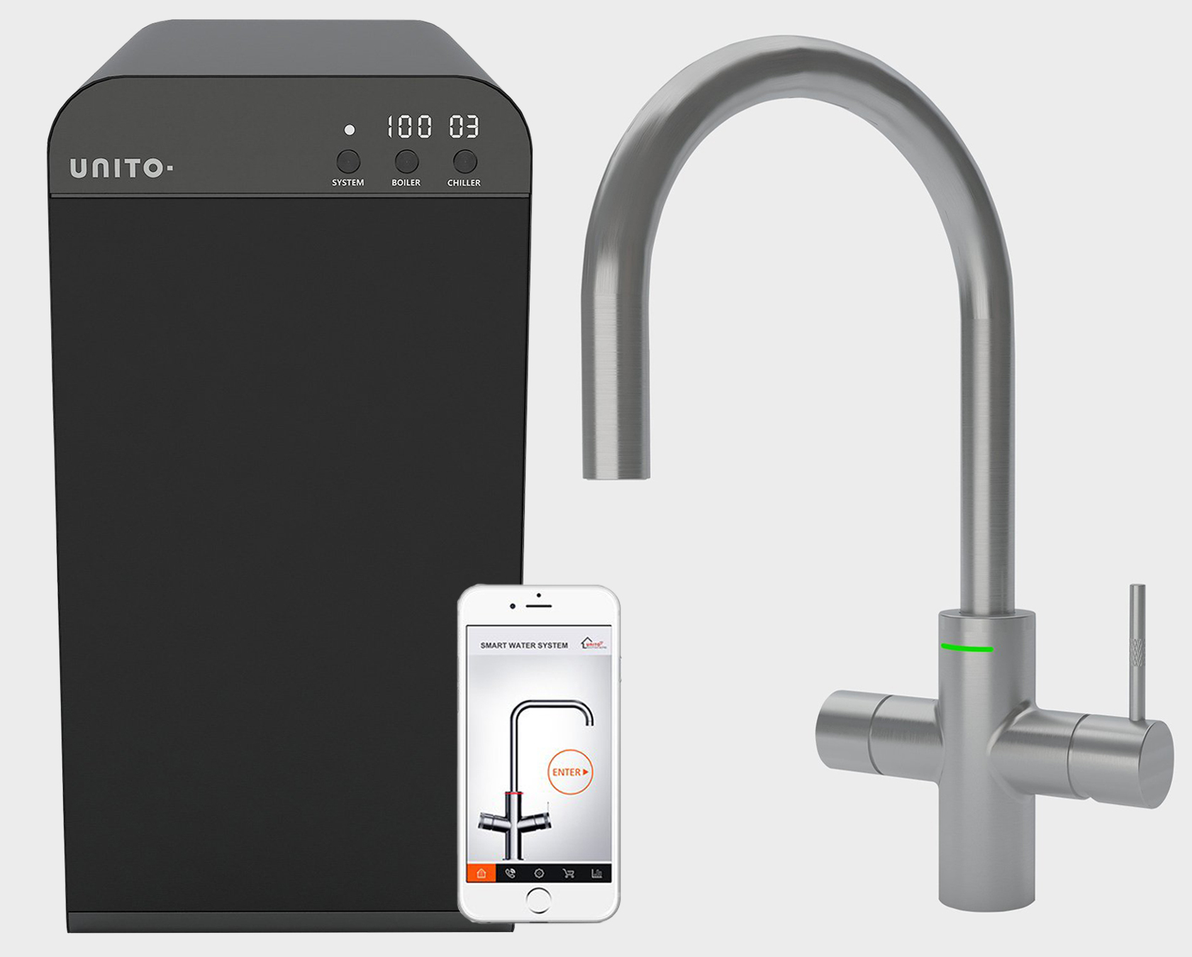 Het Infinity 5in1 water systeem is het meest uitgebreide watersysteem voor in de keuken. Met het Infinity watersysteem tap je moeiteloos gekoeld en bruisend water, kokend water, gefilterd water en natuurlijk ook gewoon warm en koud water. Infinity biedt je de mogelijkheid alleen die functies te kiezen die je nu wilt en op een later moment je systeem uit te breiden met andere functies. Je betaalt alleen wat je nodig hebt. Het Infinity watersysteem wordt ondersteund door een coole app waarmee je o.a. timers kunt instellen, nieuwe filters kunt bestellen en nog veel meer. Via de app controleert u tevens de status van bijvoorbeeld uw filters of het CO2 patroon. Met de Infinity heeft u de beschikking over: