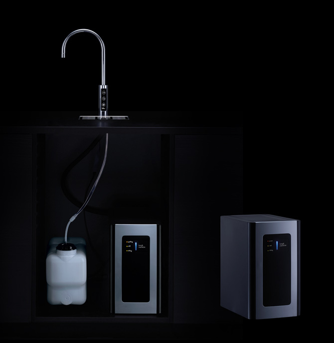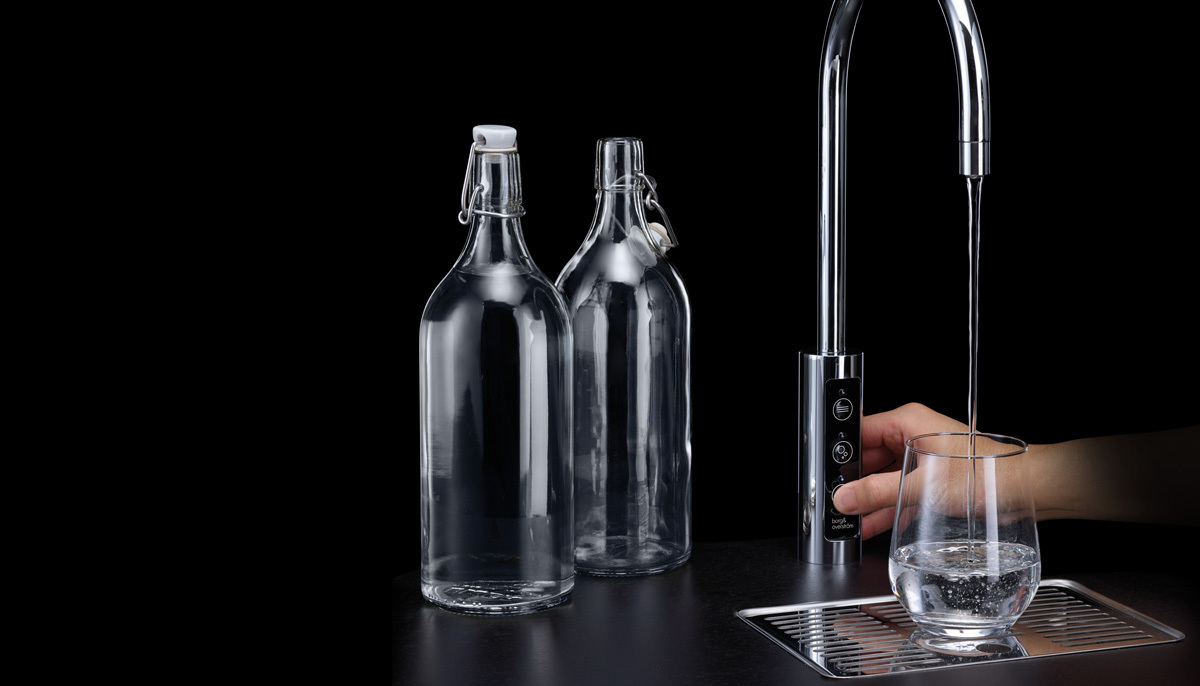 Het enige dat u ziet is de design kraan waaruit u gezuiverd en gekoeld drinkwater kunt tappen met optioneel water met koolzuur (sparkling).